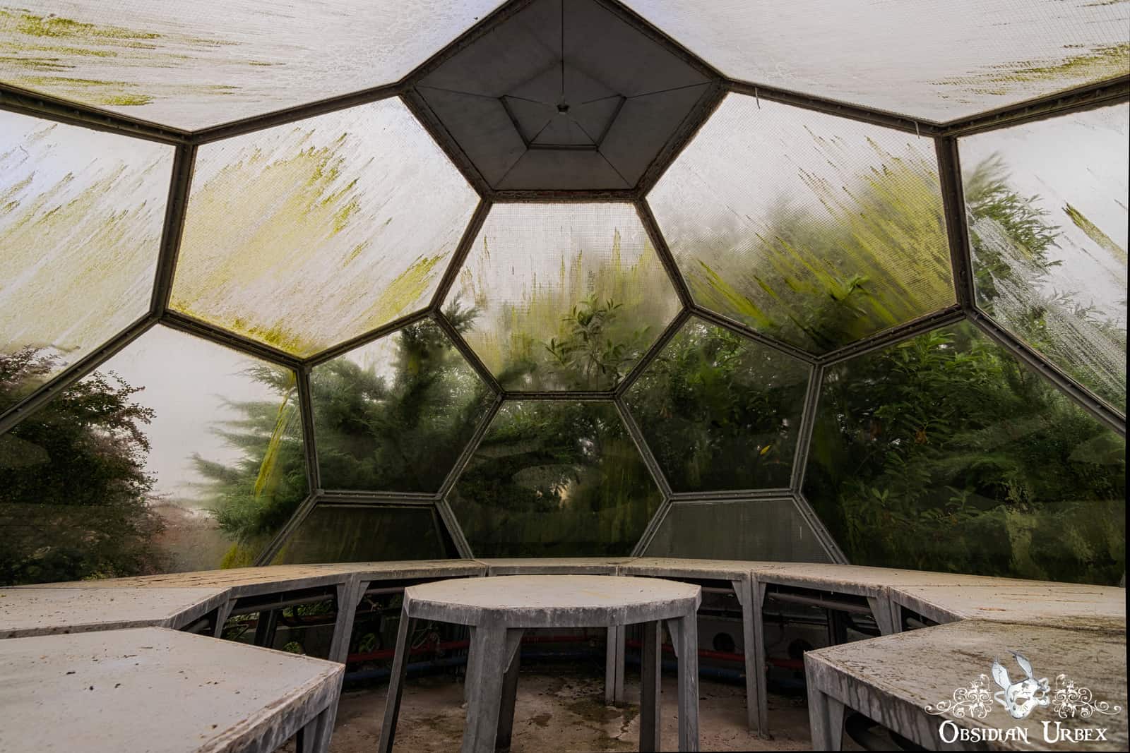 The geometric shapes of the hexagonal and pentagonal windows, mixed with the green of the external vegetation made for a very satisfying photography experience. Beautiful ferns now grown unchecked out of crevices between the pods. The striking shape of the greenhouses is reminiscent of something you would see in a Sci-Fi movie, on a distant world with alien life inside.