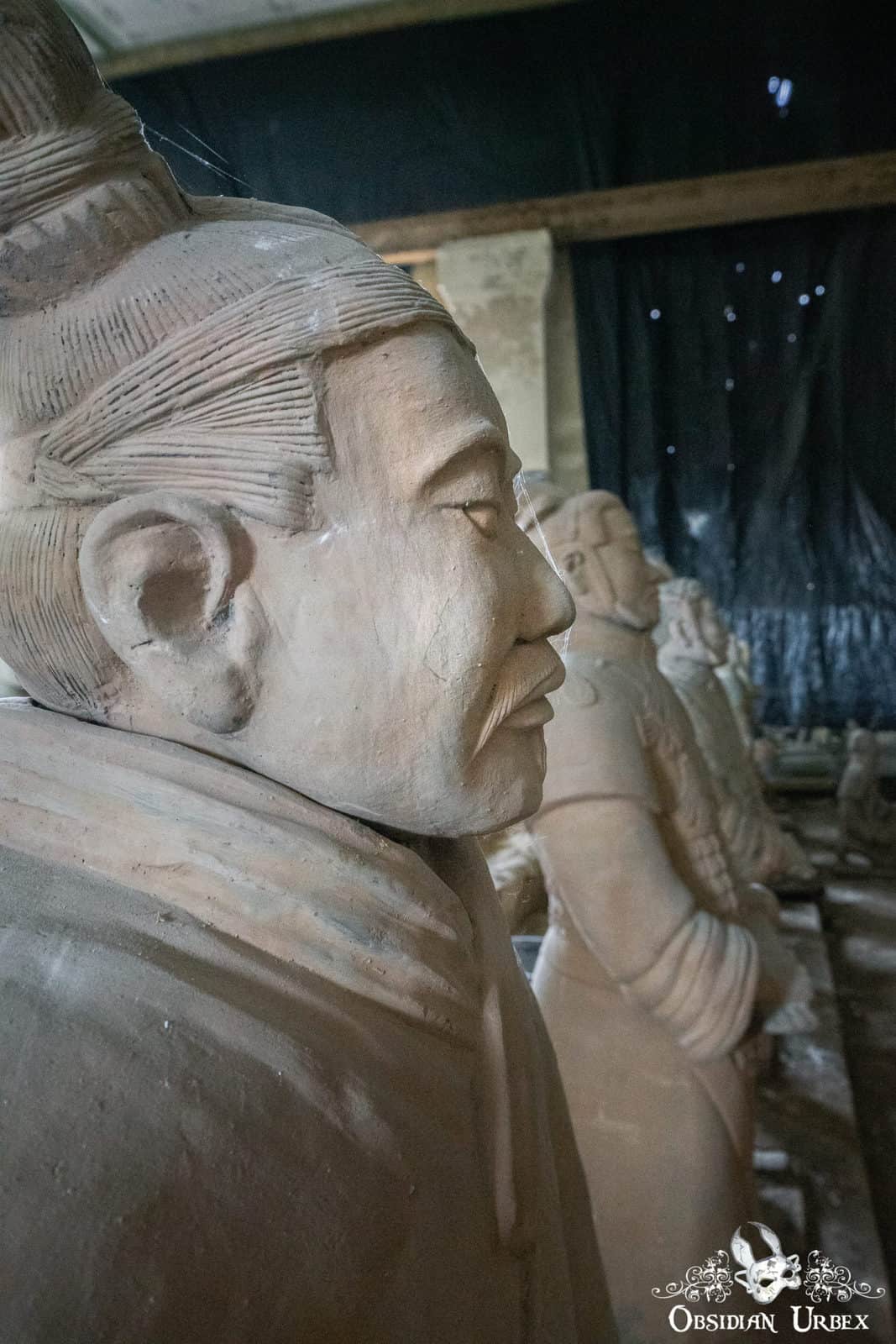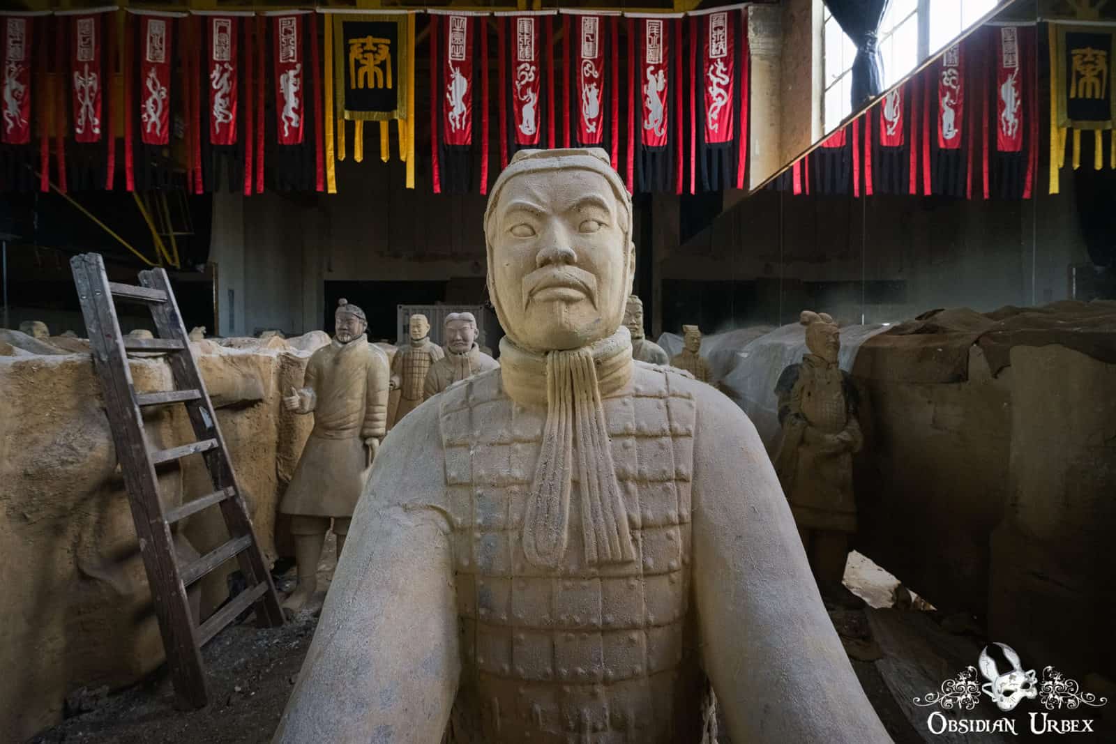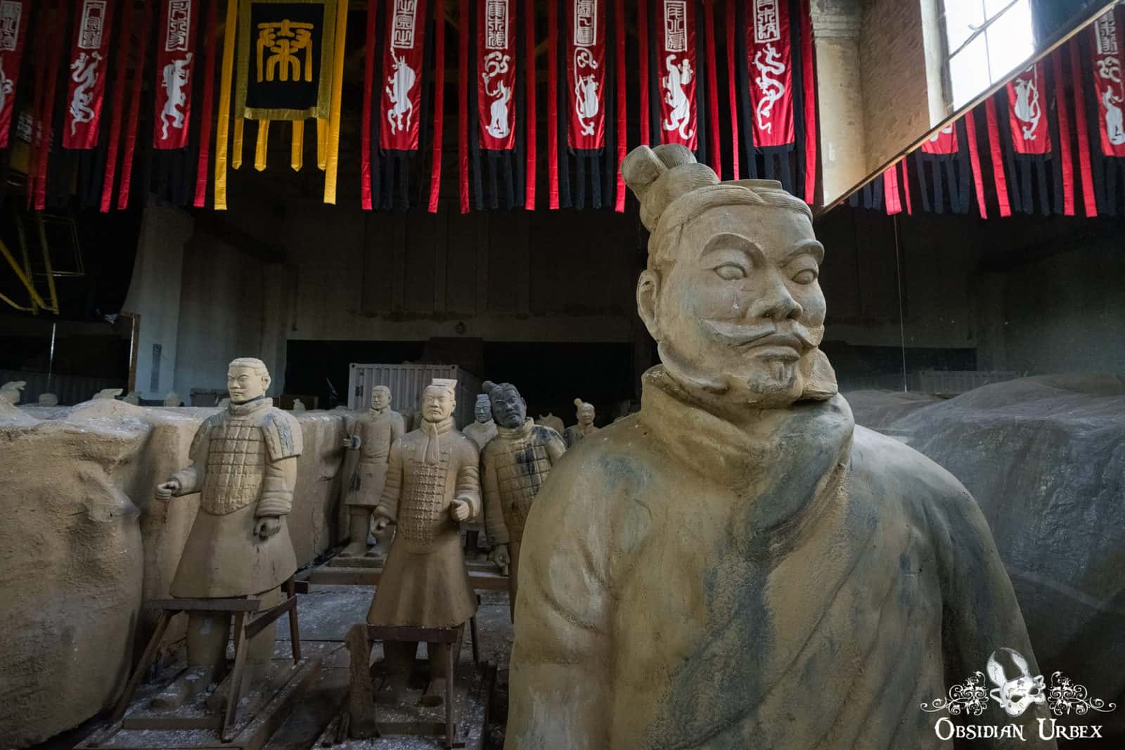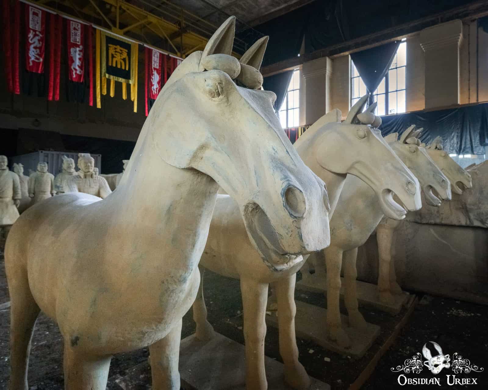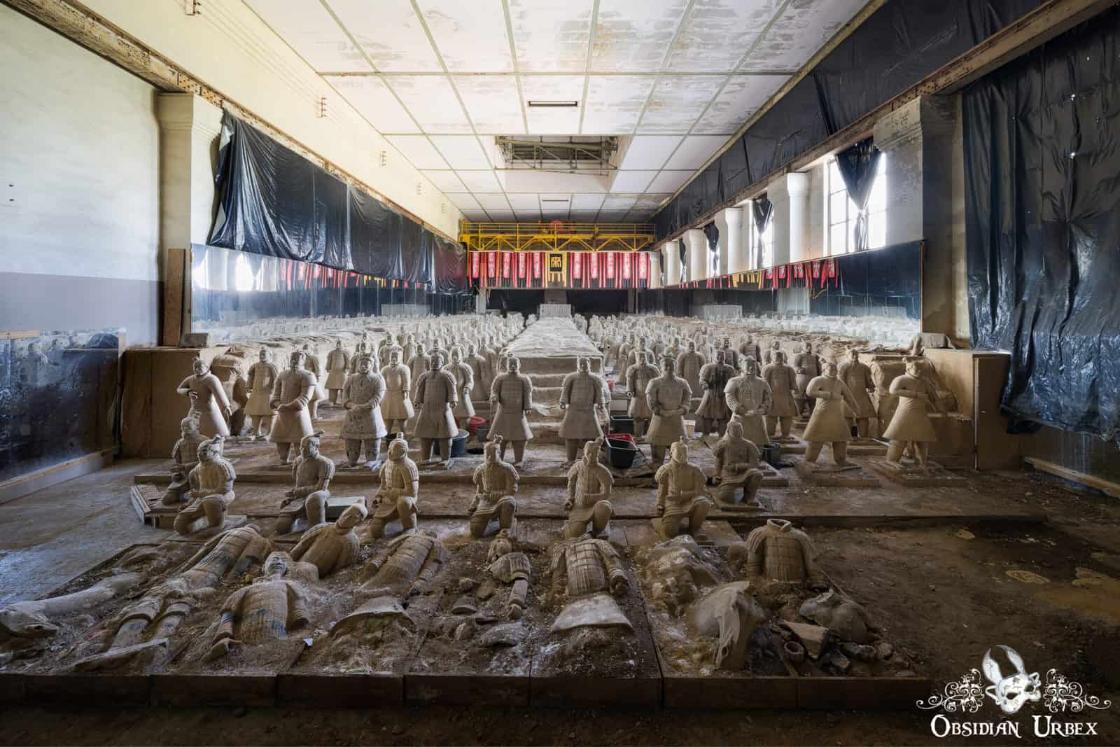 The Terracotta Army features over 200 figures; including soldiers, generals and horses. Terrakotta Armee is an alternate name for this location. These are plaster replicas of the Chinese Terracotta Army. It represents one of several such replicas scattered around the world. This replica was toured around Germany in the mid-2000s. In spite of this, they now they stand forgotten in an abandoned German factory. They stand silent, waiting to go on display once more.