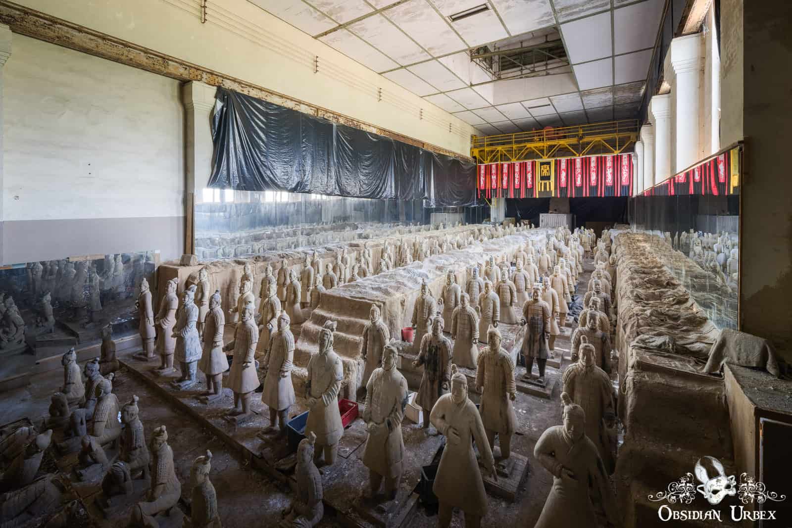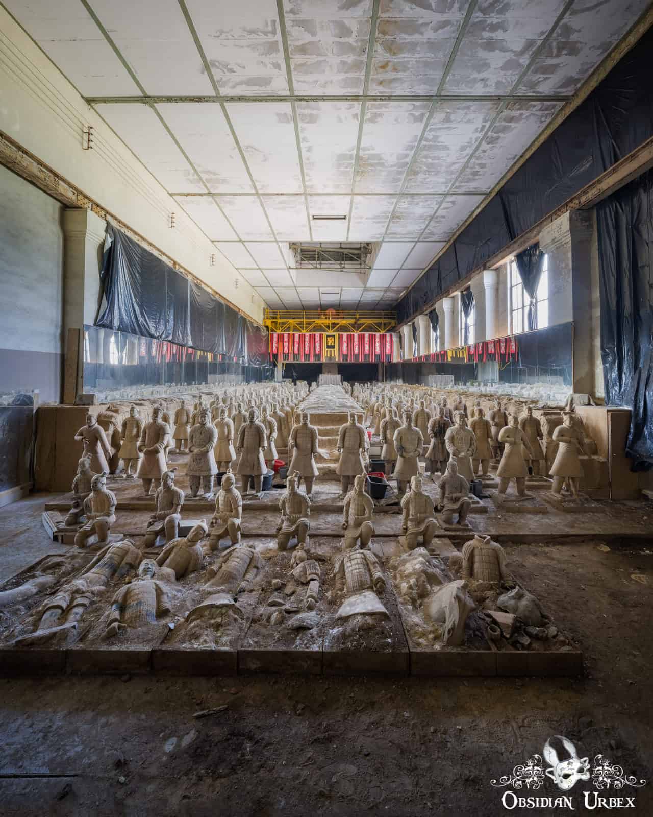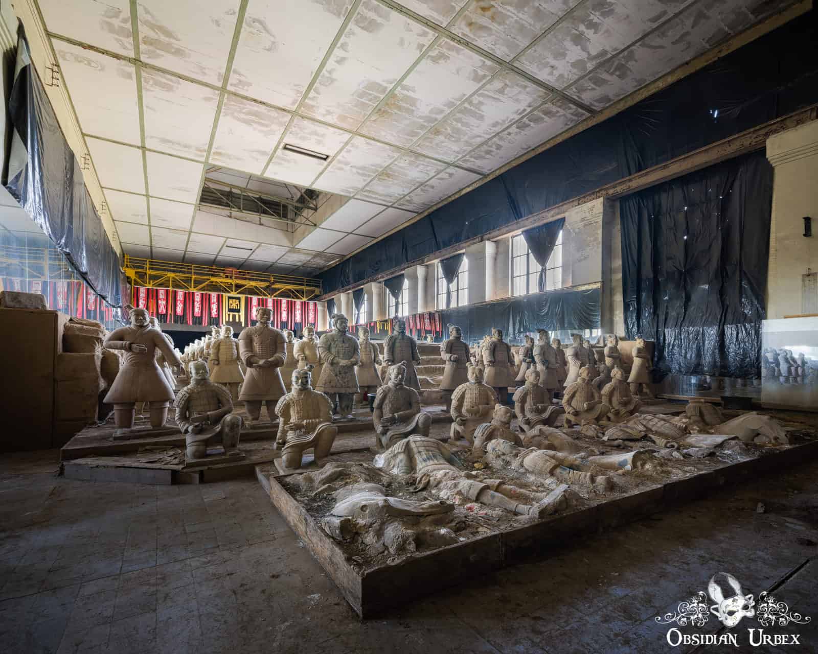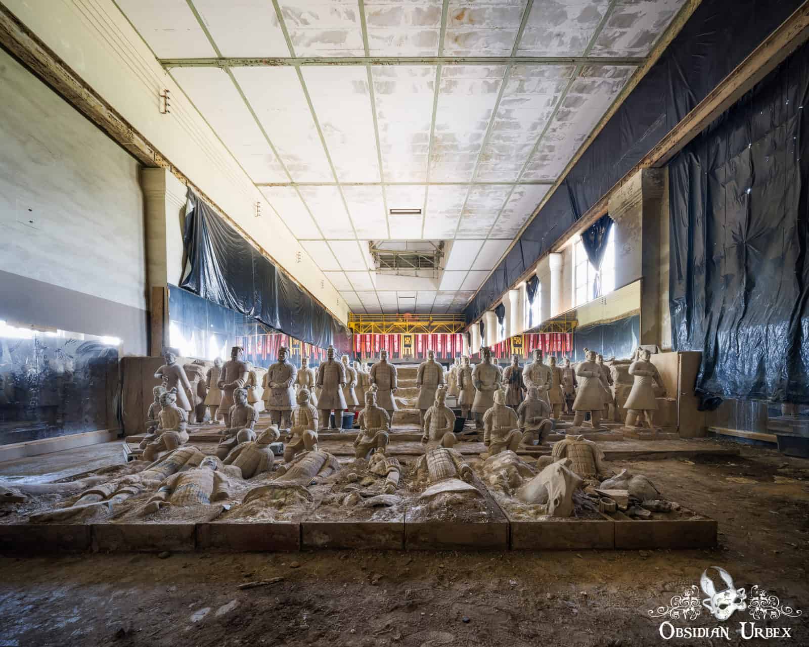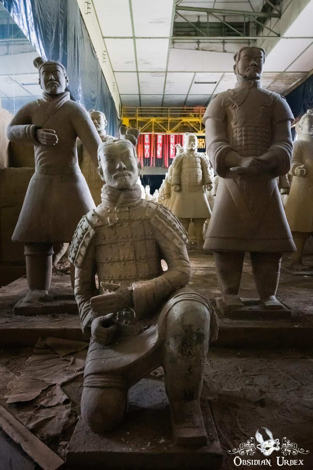 The Terracotta Army features over 200 figures; including soldiers, generals and horses. Terrakotta Armee is an alternate name for this location. These are plaster replicas of the Chinese Terracotta Army. It represents one of several such replicas scattered around the world. This replica was toured around Germany in the mid-2000s. In spite of this, they now they stand forgotten in an abandoned German factory. They stand silent, waiting to go on display once more.