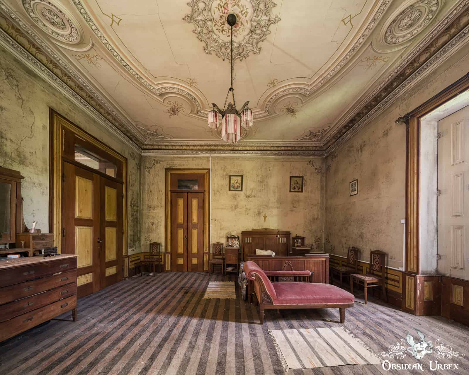 Palácio dos Flores is a unique gem, an abandoned mansion in Portugal tastefully decorated and filled with exquisite furniture. Despite my best efforts, I was unable to discover any information regarding the history of this house. It is likely in the mid- to late 19th Century. However, given its good condition, it is possible that it has not been abandoned for long.
