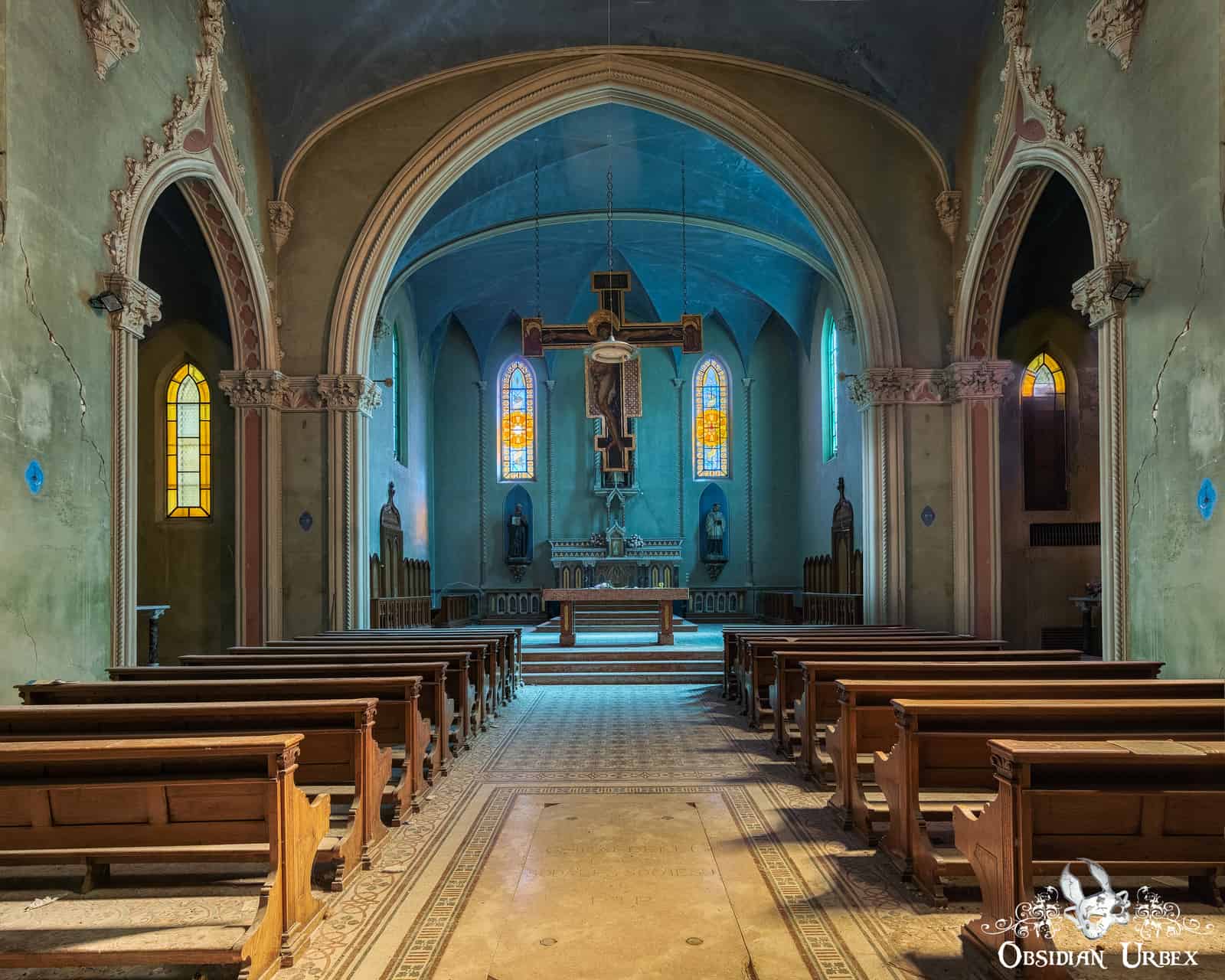 The Blue Chapel (La Chiesa Blue) is a classic abandoned church, in the hilly countryside of Italy. The chapel was built in the 19th Century, on the site of an older church which had collapsed. It has been abandoned since the 2000s.