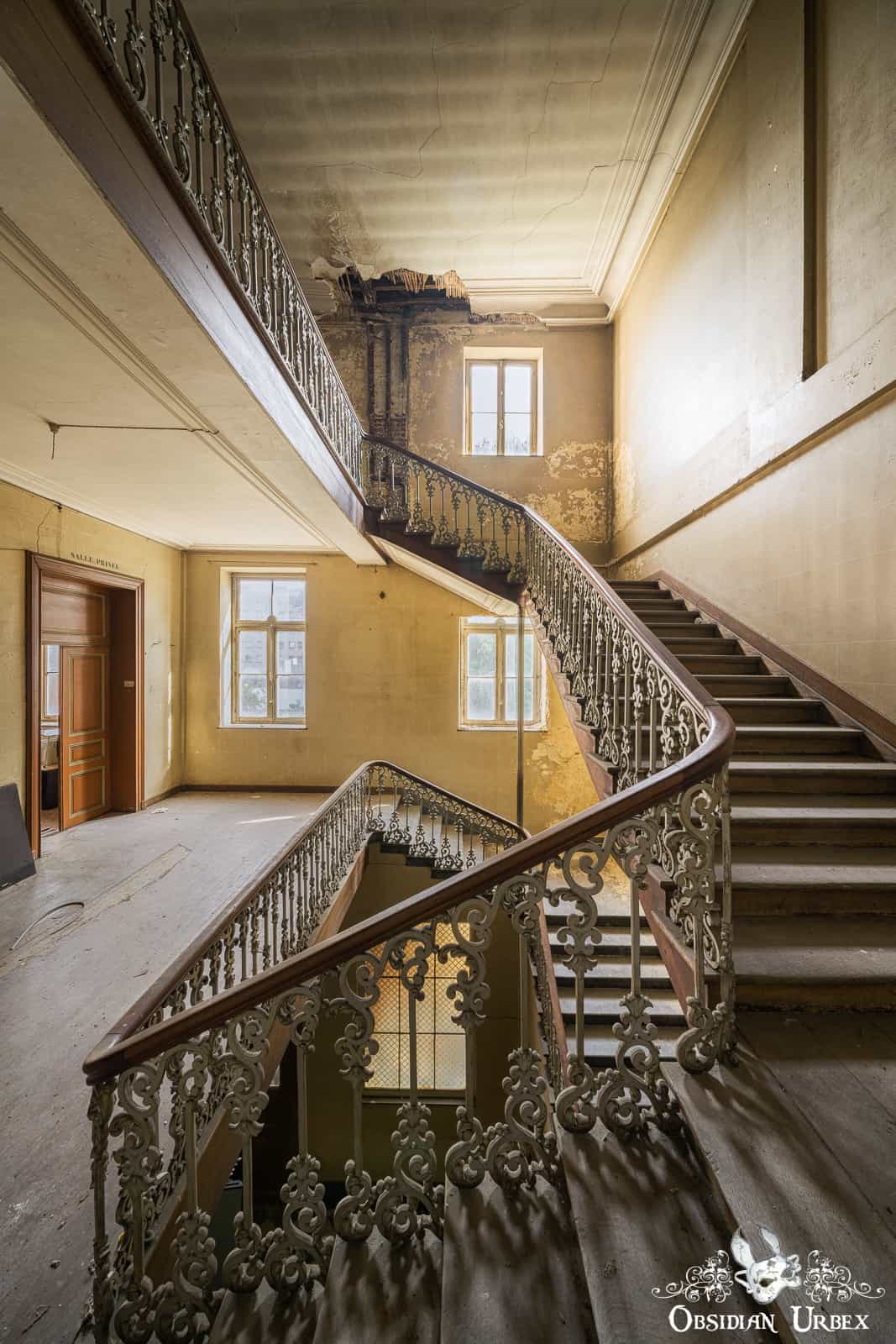 A medical facility has stood on this site for many years, the chapel was added to it in the 1860s. The architecture reflects the styles of the preceding decades; Neoclassical. One of the most striking features of the chapel is the immense dome. It is quite unique in the region. The stairway connecting the chapel to the other parts of the building is also interesting. It features beautiful ironwork balustrades. Both Chapelle Princesse Titine and stairway are delightful examples of late 19th Century craftsmanship. Despite several remodelling phases over the years, the chapel and its access were retained. The chapel and its wonderful Neo-Classical architecture were simply too precious to demolish, or alter.