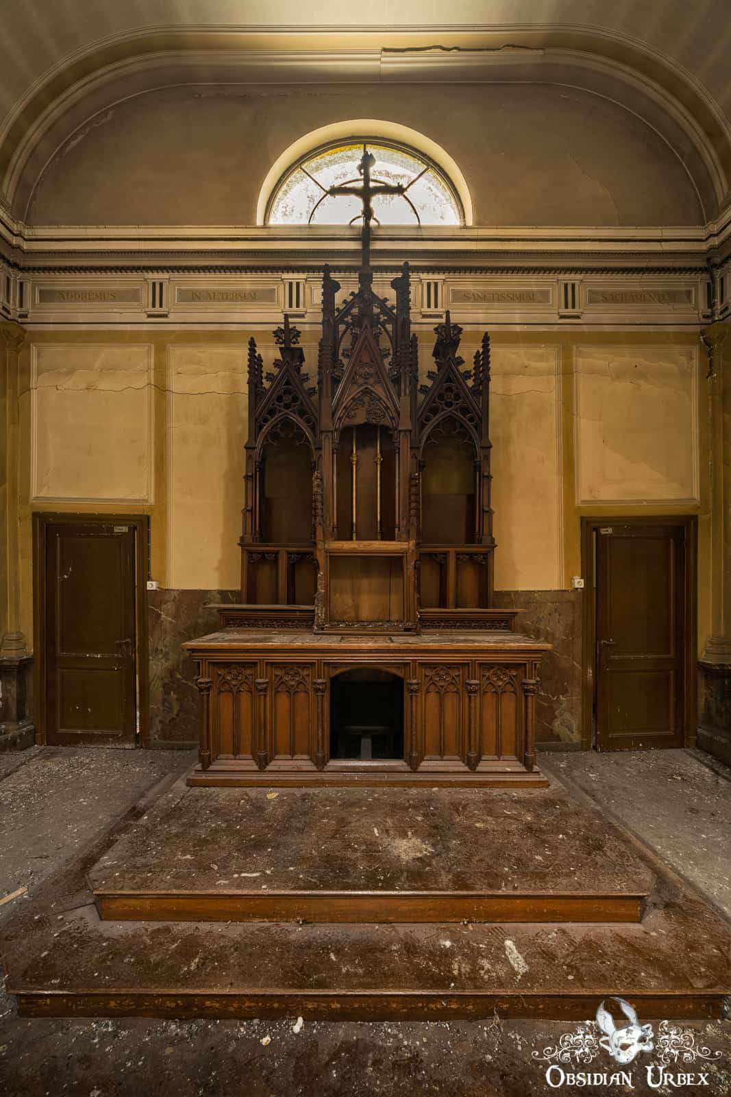 The chapel was once a public place of worship, in addition to serving the nearby hospital. Subsequently, the congregation moved elsewhere in the 1960s. Following their departure, the chapel was only be hospital residents for worship and some ceremonies. The hospital later converted into a care home. Seemingly the Chapelle Princesse Titine progressively fell out of use, likely sometime in the late 2010s. Nowadays only pigeons, and the occasional photographer, frequents this beautiful space.