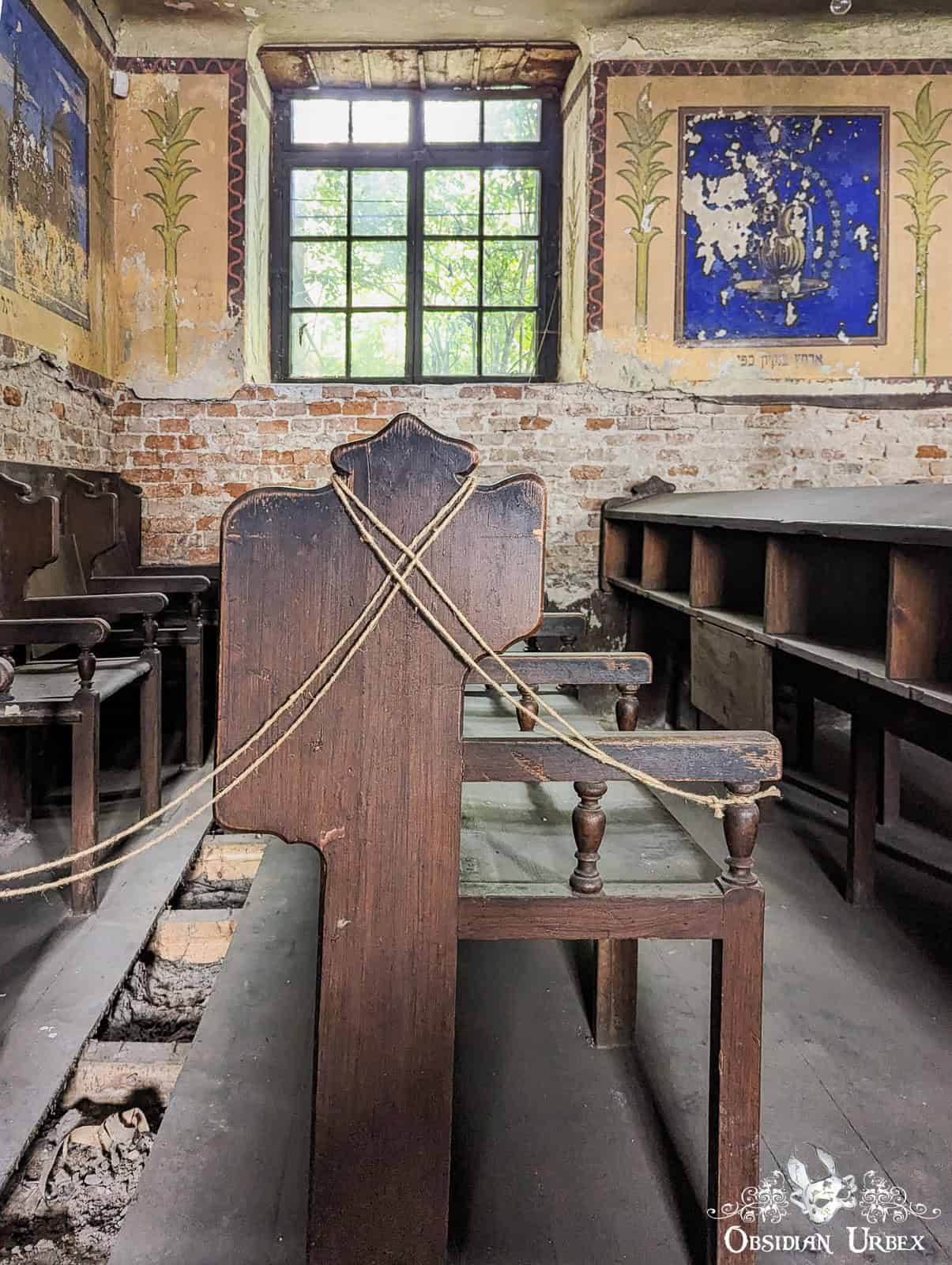 Came to the site to see if anyone had mentioned this – am very glad to hear it doesn’t appear to be original. Maybe an attempt at a memorial? Also very glad to hear that the town government looks after the building. So many synagogues in areas whose Jewish populations were ravaged by the Holocaust have been allowed to just… rot… and in some places, Jewish attempts to preserve or reopen them have been met with outright hostility from locals. It’s incredibly sad. Thank you for these beautiful photos.