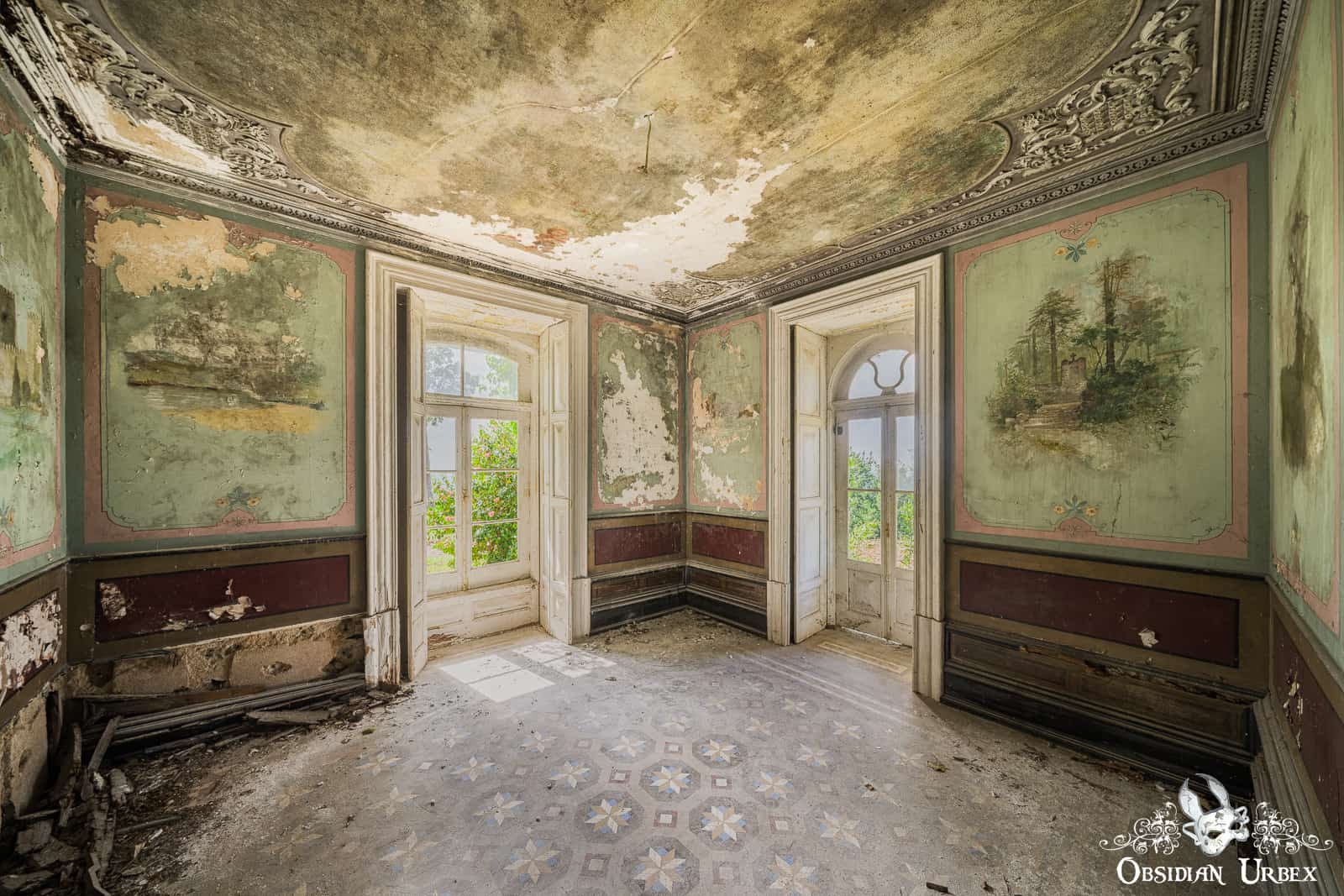 I explored this cute pastel blue house during my 2022 Portugal Tour. In addition to the exterior shots, I also enjoyed photographing the interior. The main rooms of interest were the frescoed living room, and a large airy room on the upper floor with white vaulted ceilings. Interestingly, the ornate ceilings of the white room are ornamented with zodiac symbols.