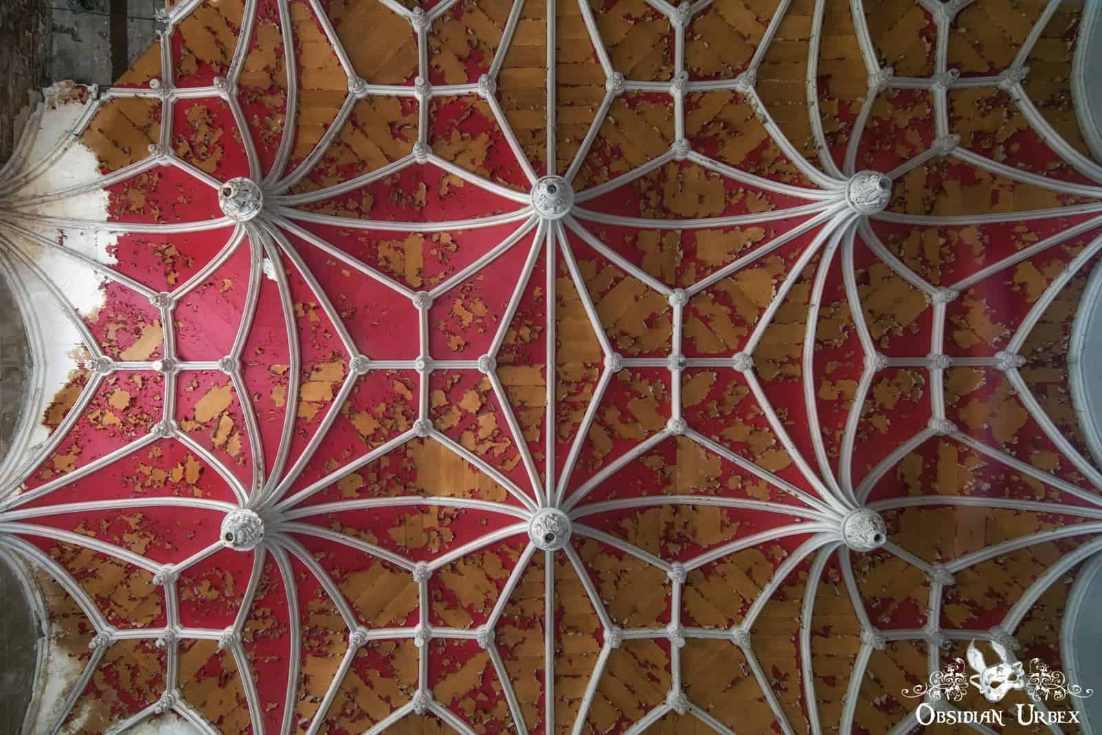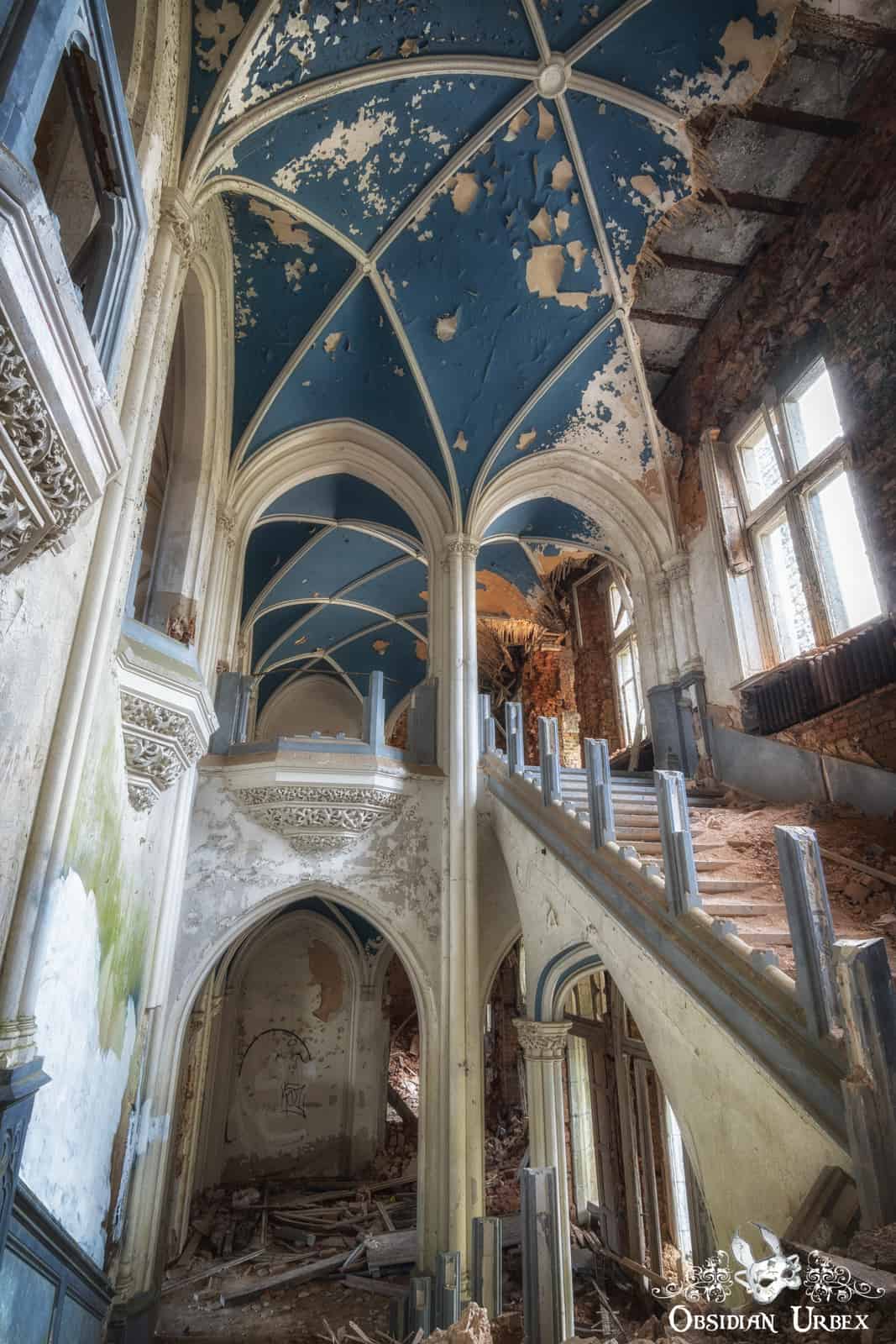Brightly coloured ceilings with many arches and columns greet you upon entering the main doorway. A large drained pond sat at the back of the Château Miranda, a toad pool. The walls and floors were crumbling. Parts of the structure, specifically the upper floors, were very treacherous in places.