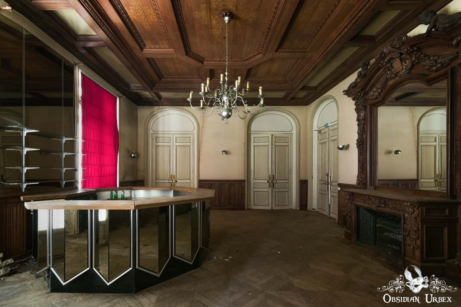 The main draw of Chateau Sarco is the two storey tall, 100m square entry hall. The blood-red carpet covering the wide marble stairs draw your eye like a magnet. The upper landing has a circular cut-out with ornate floral-themed black iron balustrades. Both levels feature chessboard black-and-white chequered tiled floors. Cornflower blue painted doors lead off from the main entrance.