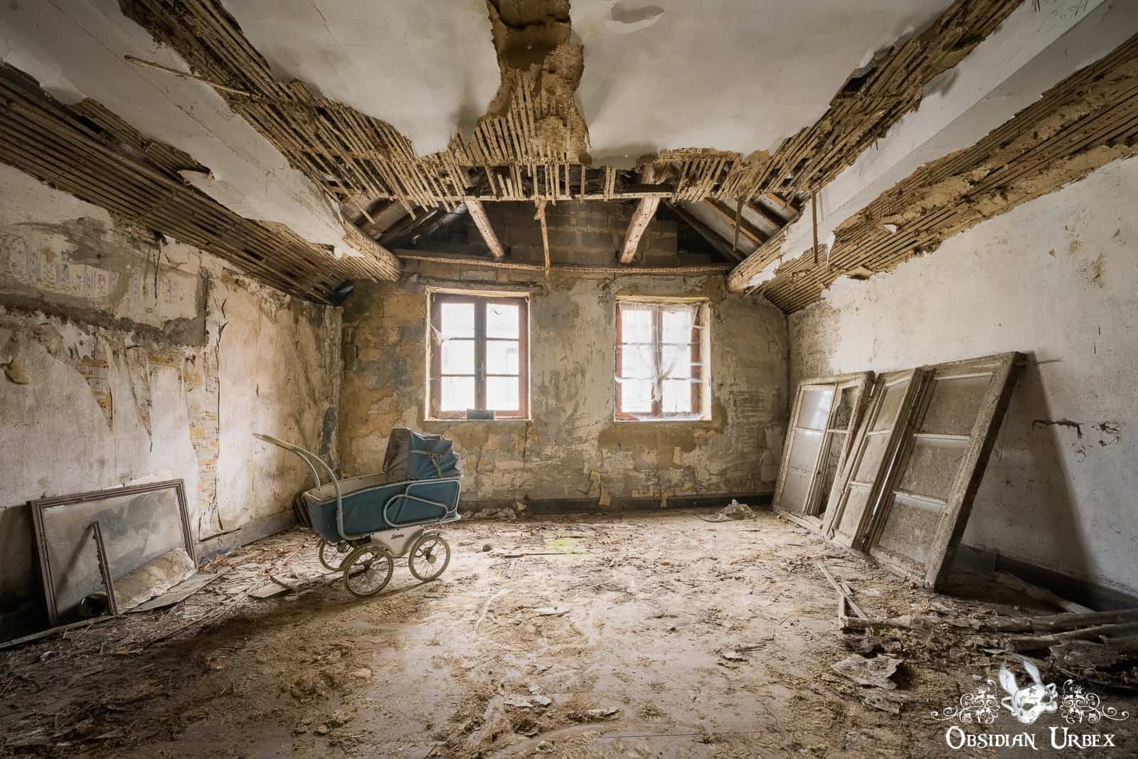 The farm dates back to the 1790s. The story goes that the couple who owned the farm are deceased, sometime around 2010. It was hoped that their children would inherit the farm, and either work it or sell it on. Seemingly the children did not want to inherit the farm, and so ownership passed on to the state. As is typical, red tape and complications arise when dilapidated old buildings are concerned. A zoning plan and various permits must be filed before anything can progress. Clearly, this has not happened, and it is uncertain if/when this will occur. Until then Ferme aux Drapeaux remains a playground for photographers and explorers.