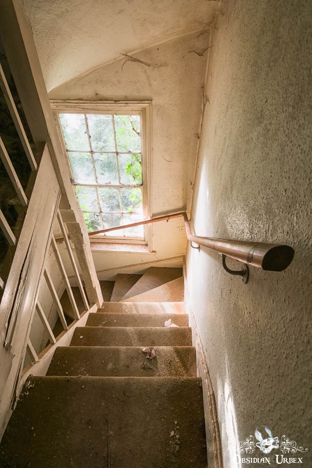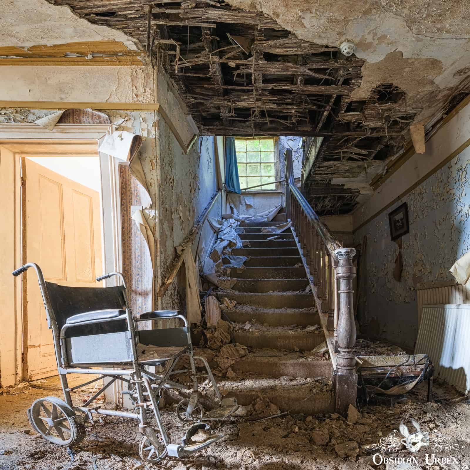 Since my visit, much of the upper floors of Twilight Years Care Home have collapsed. Nowadays the main stairway is now almost impassable. Reaching the bedrooms, which were on the upper floor, is now virtually impossible.