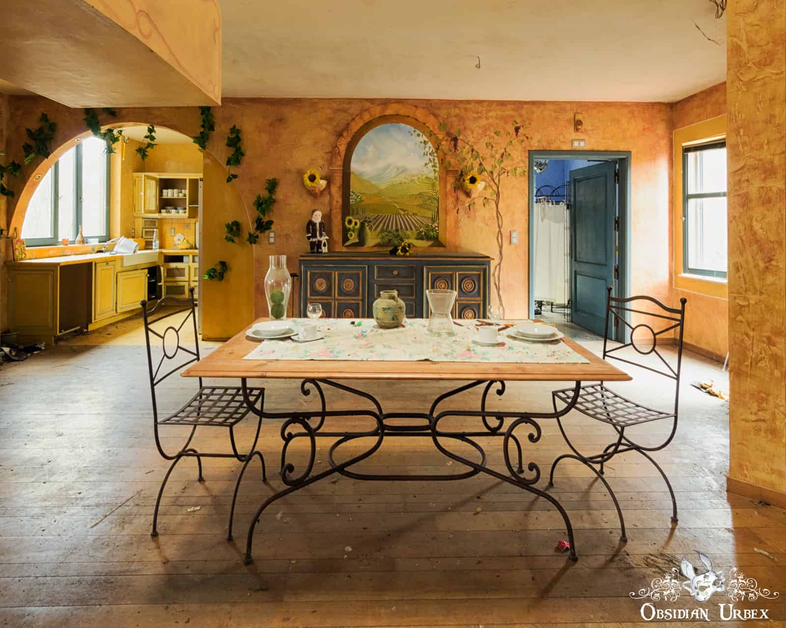 Villa Mistral is an abandoned house in Belgium. The bright colours and unusual decor of this location are certainly interesting. This was the home of a lady with a love of Provençal /Mediterranean style. The phrase “La Caresse du Mistral”, meaning “The caress of the Mistral”, is painted on the wall. Mistral is the name of the stong north-westerly wind that blows through southern France and the Mediterranean in the winter months.